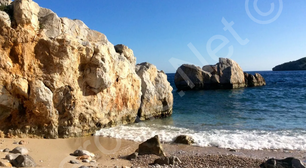 CLOSEST BEACH: Without doubt, the closest beach (150m from the lower boundary) is a glorious, idyllic dream of a beach that anyone could wish for on their doorstep. It can't fail to delight anyone looking for their deserted, private spot in the sun. The beach is partially sandy and shelves gently for about 6 meters until a ridge of mostly submerged rocks.